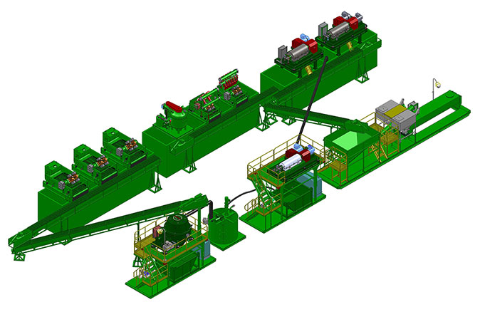 冠能模塊化廢漿處理系統(tǒng)是將不同功能的設(shè)備制作成獨(dú)立的小模塊,包括鉆屑輸送裝置、干燥篩裝置、泥漿中轉(zhuǎn)裝置、甩干機(jī)支架模塊、撬裝離心機(jī)