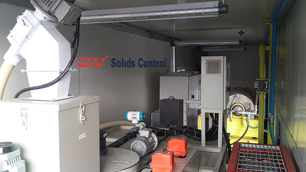 一套包含一臺大轉(zhuǎn)鼓泥漿離心機的絮凝加藥系統(tǒng),安裝在40尺的集裝箱內(nèi)